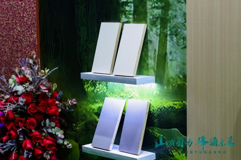 此次發布會上,浙江云峰莫干山營銷有限公司產品經理徐虹羊于現場對莫干山板材推出的新品進行了詳細的講解。植物源抗菌板、植物源釋香板12款花色、植物源鮮花板4款花色、EB高能烤漆板16款花色、金屬色PET飾面板8款花色,蘊含新材料、新技術、新功能的產品,在既有的品牌發展優勢基礎上,將設計、美學、場景、科技在各種應用空間中延伸,充分滿足不同場景不同消費群體的需求。