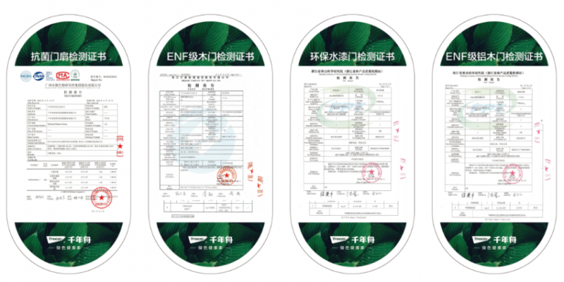 根據廣州市微生物研究所集團股份有限公司檢測結果(報告編號WJ20232021),應用自主研發的鋅效抗菌技術手段的千年舟木門飾面,針對大腸桿菌、金黃色葡萄球菌、銅綠假單胞菌、肺炎克雷伯氏菌等菌種,具備高達99.9%以上的抗菌效果。
