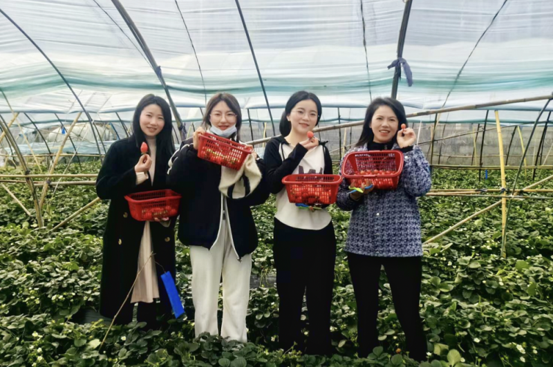 伴隨著一路歡聲笑語,大家乘車來到草莓采摘基地,在工作人員的引領下進入草莓棚,零距離感受田園風光,親身體驗采摘的樂趣和勞動的快樂。大家小心翼翼地行走在田壟之間,聞著濃濃的草莓果香,在綠枝叢中尋找“藏匿”其中的甜美果實,大家一邊采摘一邊互相交流,笑容蕩漾在每個人的臉上,場面十分活躍。不一會兒,每個人手里的籃子已盛滿了豐碩的果實,大家在春意盎然的大自然中度過了一個有意義的節日。