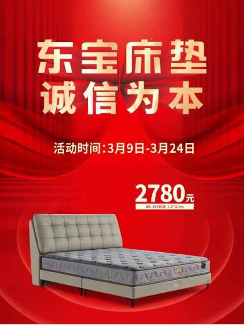 春風送暖,萬象更新。為配合大家的家居煥新大計,3月9日-3月24日,東寶床墊舉行開門紅活動,推出兩款高性價比的產品,回饋廣大消費者的支持與認可。