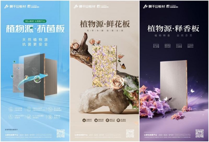 伴隨國民經濟水平提高和消費需求升級,家居產品消費逐步從功能導向,轉入追求品質和健康環保的新階段。如何以科技創新和綠色智造滿足當下市場對綠色環保家裝的需求,是全行業共同探索的方向。無論是曾經的熱議E0級標準,還是近兩年風靡的無醛添加,亦或是當下興起的除醛、抗菌等功能板材,整個行業關于板材的環保競爭,向來處于緊張而激烈的狀態。而在內卷化如此嚴重的賽道中,莫干山板材率先引入植物源的概念,推出的植物源抗菌板、鮮花板、釋香板等多個系列新品,無疑是獨特的存在。莫干山板材充分響應市場呼聲,引領消費導向的綠色升級,以行業領導者姿態重新定義家居綠色變革之路。