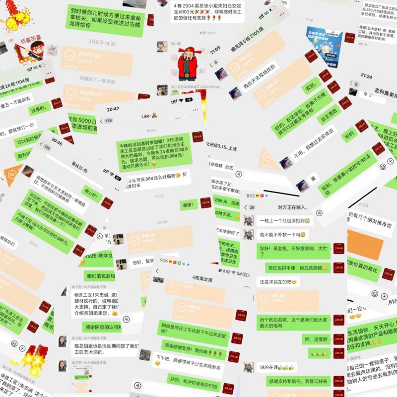 落霞一片千峰上,夕陽滿是開門紅。忽聞橘州傳捷報(bào),佳日欣逢麗句頌。3月15日晚,期盼已久的涂工匠化州店3.15線上活動(dòng)如約而至。現(xiàn)場(chǎng)新老客戶好評(píng)如潮,訂單蜂擁而至,奏響新春華彩序曲,譜寫首季開門紅!