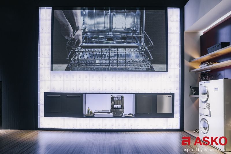 此次獲獎的DW60洗碗機,作為ASKO明星產品,在此次AWE 的ASKO展廳中備受矚目——108支水晶杯晶瑩剔透,映襯出鋼材質洗碗機的奢華質感,也仿佛映照出ASKO洗碗機作為諾貝爾頒獎晚宴水晶杯“御用”清潔產品的榮耀。DW60洗碗機兼具功能與美學的材質展示與與結構解構,用每一個細節闡釋著,艾普蘭優秀產品獎花落ASKO實至名歸。