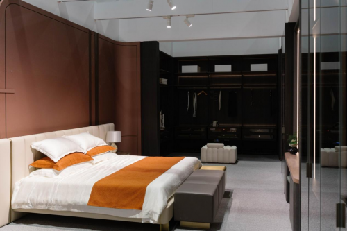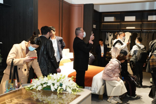 據悉,本次紅利整木定制展館總面積超過260㎡,通過完整的家居空間,展示了包括客廳、餐廳、臥室、衣帽間等多個獨立部分,共同演繹了全新“悅境”系列的輕奢風情。悅境汲取當前主流受眾的家居需求及審美風情,以輕奢風為核心,完美結合家居實用主義與藝術調性,呈現紅利整木在家居定制領域的獨特魅力和創新實力。在設計理念上,紅利“悅境”系列以現代生活方式的深入洞察和對傳統治木工藝的傳承;由設計師精選原木木皮與水性漆相融合,結合玻璃材質與金屬材質,打造出兼具美感與實用的家居藝術調性。在展會現場,紅利展館引發消費者現場熱議,觀展者比肩接踵,意向加盟商更是絡繹不絕。