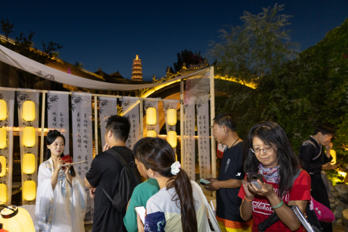 另一大亮點則是“十三花神落人間”活動,讓游客有機會與花神們進行互動,通過飛花令-對詩詞的活動形式,讓游客們深刻體驗到傳統文化的魅力。只要游客們集齊十三個點位的花章,便可領取一份精美禮品!