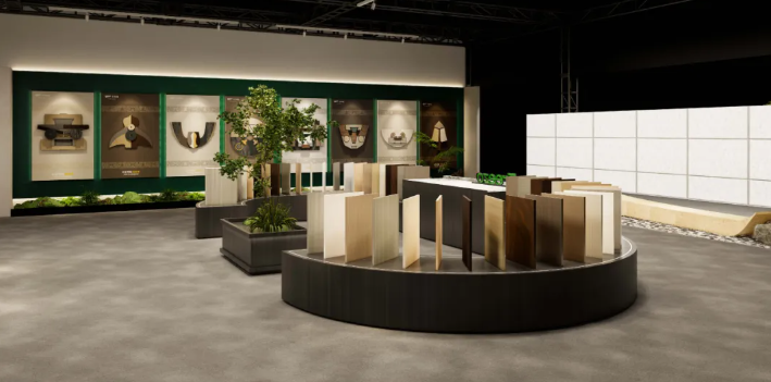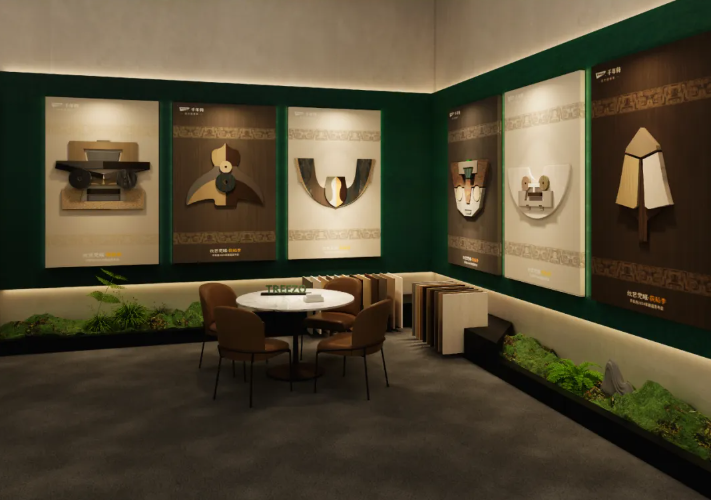 在有限的展位空間里,巧妙運(yùn)用良渚文化元素,將天然紋理、溫潤觸感的木文化與現(xiàn)代的板材工藝完美結(jié)合,為您呈現(xiàn)出一系列匠心獨(dú)運(yùn)、品質(zhì)優(yōu)越的板材產(chǎn)品。