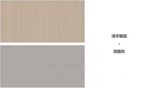 選用千年舟花色清平朝露+高雅灰,干凈通透,軟裝則用深色提升質(zhì)感;深+淺,輕+重的形式,提升空間的層次感。