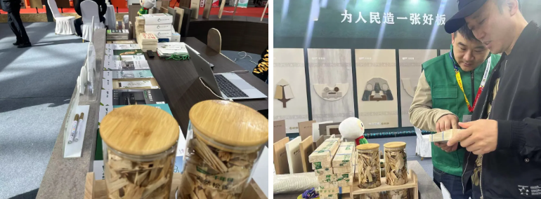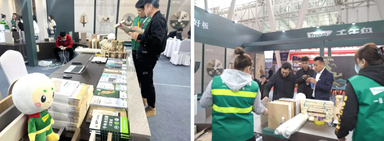 而此次展會的一大亮點還在于觀眾互動環節的設置。觀眾可以通過刨片的大小、基材材質質感的觸摸,更清晰地欣賞展示樣板。通過現場試驗,觀眾也能更加了解產品的性能。這種互動式的體驗方式不僅增加了展會的趣味性,也讓觀眾們更深入地了解千年舟的產品特性與千年舟綠色健康家的核心理念。