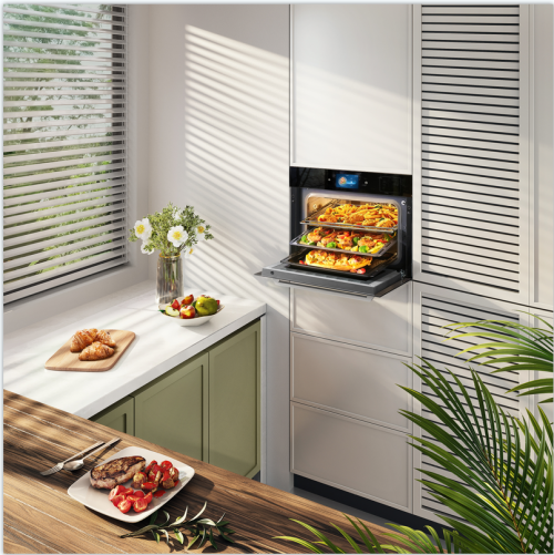 嵌入式蒸烤一體機(jī)。顧名思義嵌入到柜體中,它能做到產(chǎn)品和廚房環(huán)境融為一體,讓美觀性大大提升;其次,嵌入式蒸烤一體機(jī)空間要比臺(tái)式大,可以做到50L以上,滿足一家人或更多人聚餐使用,烹飪的效率高。同樣,選擇這類產(chǎn)品的用戶,需要在裝修階段就確定好型號(hào),并與裝修木工溝通好預(yù)留尺寸。