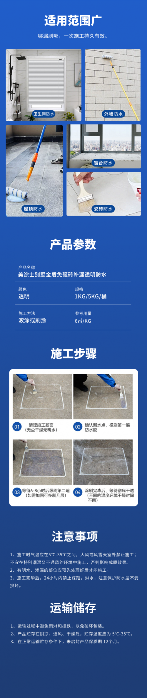 美涂士別墅金盾免砸磚補漏透明防水
