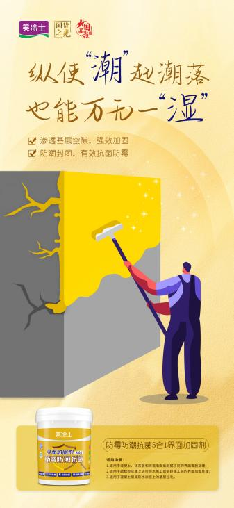美涂士的防水基輔材產(chǎn)品組合,從墻面基層上為消費(fèi)者解決了墻面受潮發(fā)霉的難題,營(yíng)造了一個(gè)健康、美觀的家居環(huán)境。特別是在多雨潮濕的季節(jié),這一產(chǎn)品組合顯得尤為重要,它能有效地為家人打造一個(gè)抵御潮濕的屏障,守護(hù)家人的健康。