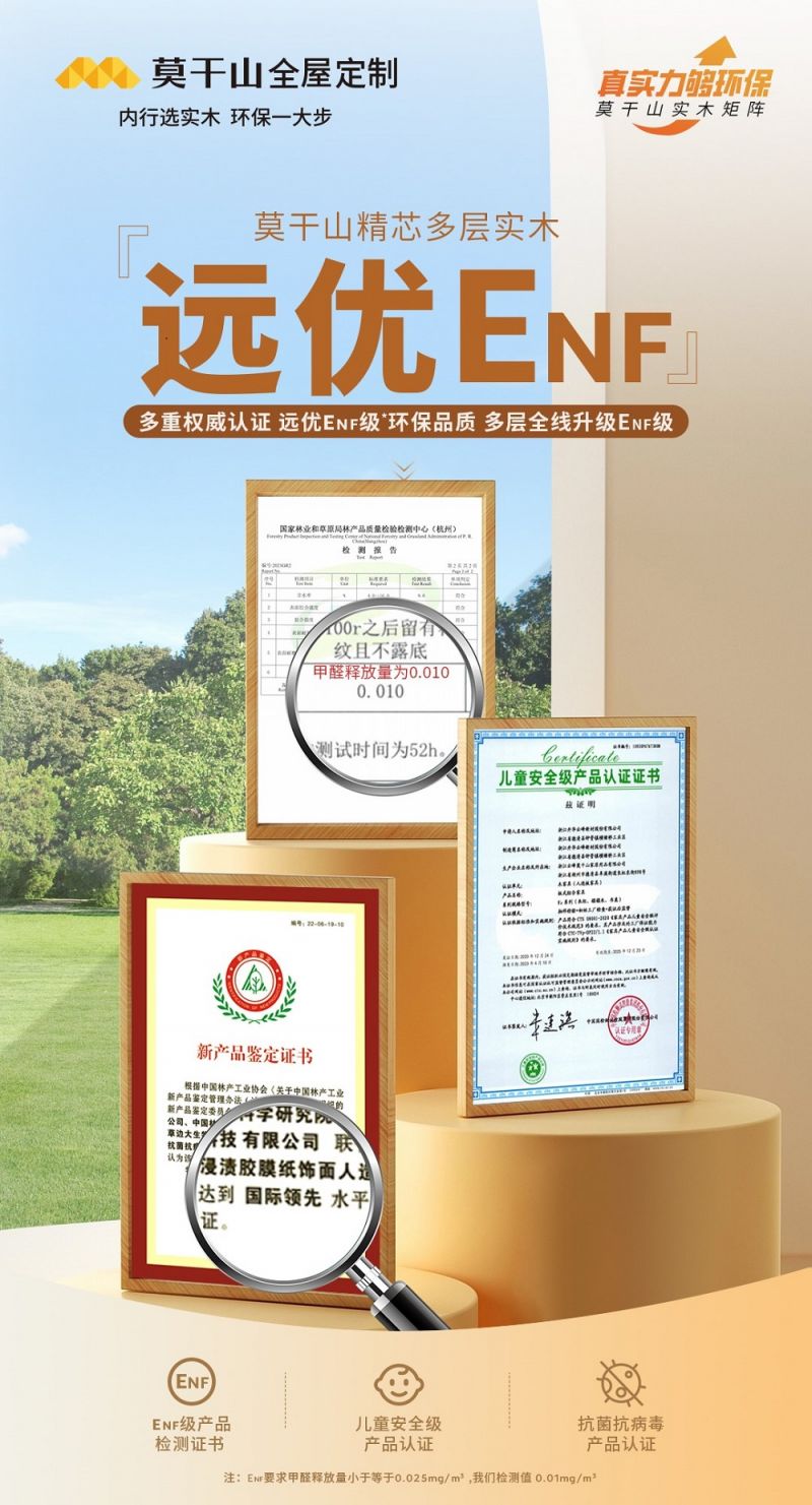 莫干山家居傳承了云峰莫干山在木材深加工以及綠色制造領(lǐng)域的優(yōu)秀基因,始終堅(jiān)持以“顏值入眼 環(huán)保入心 實(shí)木入骨”的品牌理念,專(zhuān)注實(shí)木定制細(xì)分賽道,為消費(fèi)者提供門(mén)墻柜地一體化的全空間ENF級(jí)產(chǎn)品體系。