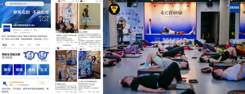 本次與Costa咖啡、超級猩猩健身的聯名營銷活動更是作了全新的破圈探索,圍繞“煥新生活能見度“這一核心主題,設置了線下快閃主題活動打卡,從線上延伸到線下雙重滲透,重點吸引了高端白領、運動愛好者等細分人群,體現了其持續關注并挖掘不同消費者類型在不同場景下的個性化需求。許多消費者表示首次在咖啡店/健身房看見蔡司眼鏡的宣傳內容,十分新奇,按照指引領取了品牌優惠券,給自己換上了蔡司眼鏡。這種深入消費者生活場景的傳播,恰恰表達了蔡司光學對消費者在多元化場景中個性化視覺需求的關注與洞察,力求讓每位消費者都能從蔡司眼鏡中感受到“世界與我,由目光相連”的舒適視覺體驗,致力于為消費者提供終身視覺管理方案。