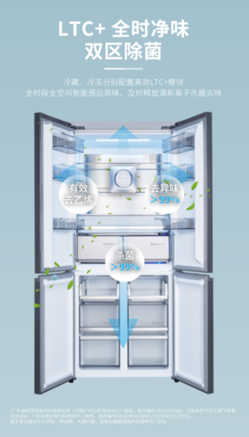 冷藏、冷凍分別配置高效LTC+模塊,全時(shí)段全空間智能感應(yīng)異味,及時(shí)釋放清新離子殺菌去味,保障食材新鮮衛(wèi)生,隨享健康美味的佳肴。