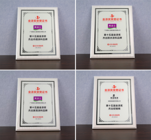 經(jīng)過網(wǎng)絡(luò)投票、專家評(píng)審等環(huán)節(jié),本次大會(huì)上正式公布了第十五屆金漆獎(jiǎng)極具年度價(jià)值和標(biāo)桿性的榜單,美涂士憑借行業(yè)領(lǐng)先的綜合實(shí)力及引領(lǐng)趨勢(shì)的產(chǎn)品實(shí)力,一舉斬獲“第十五屆金漆獎(jiǎng)杰出藝術(shù)涂料品牌、第十五屆金漆獎(jiǎng)杰出內(nèi)墻涂料品牌、第十五屆金漆獎(jiǎng)杰出防水涂料品牌、第十五屆金漆獎(jiǎng)杰出家具涂料品牌”4大榮譽(yù),此外湖南海誼建材作為美涂士標(biāo)桿大商獲評(píng)“第十五屆金漆獎(jiǎng)杰出經(jīng)銷商”,以實(shí)力鑄就輝煌!