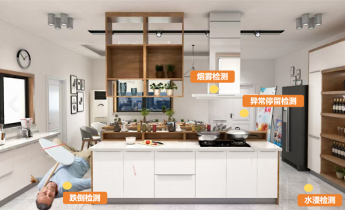用戶可以通過手機(jī)App實(shí)時(shí)查看監(jiān)控錄像,并進(jìn)行遠(yuǎn)程控制,實(shí)時(shí)監(jiān)控家庭安全,配合移動(dòng)偵測(cè)和報(bào)警功能,及時(shí)發(fā)現(xiàn)異常情況。系統(tǒng)集成了煙霧監(jiān)測(cè)、摔倒檢測(cè)、異常停留檢測(cè)、哭聲檢測(cè)等多項(xiàng)功能,對(duì)家庭安全問題進(jìn)行實(shí)時(shí)監(jiān)測(cè)。