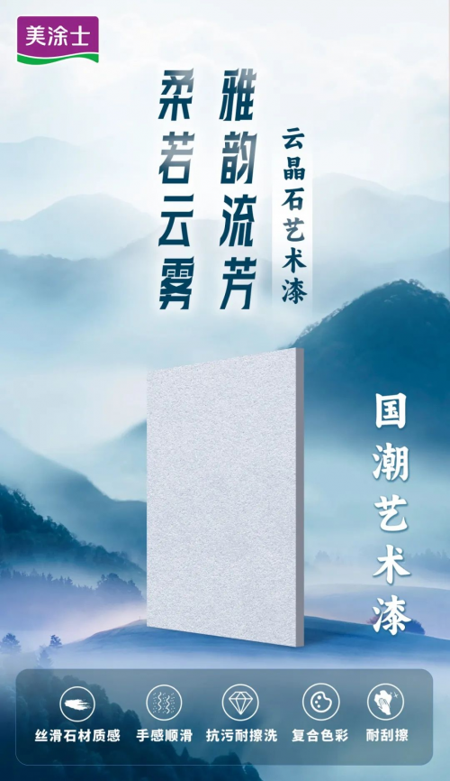 在此次美涂士藝術(shù)漆品牌日啟動(dòng)會(huì)上,美涂士也面向市場(chǎng)重磅發(fā)布了凈醛抗污皮影藝術(shù)漆及云晶石藝術(shù)漆兩款藝術(shù)漆新品。