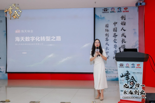 參訪行程結束后,峰會現場邀請了海天味業集團人才發展總監劉楚倩女士,帶來《海天數字化轉型之路》的主題分享,全面從產品力、研發力、生產力、銷售力、品牌力介紹海天味業。作為擁有300年歷史的傳統企業,海天的變革之路是堅持核心競爭力的打造,以品質為根本,堅持傳統釀造工藝的傳承與創新,年均投入銷售收入的3%(據介紹2023年7.15億)作為研發經費,持續推動技術創新、核心工藝不斷提升、產品不斷創新升級,打造品牌的核心組合壁壘。海天把進入千家萬戶的調味品做到行業極致,2021年營收突破250億元,實現了百年老字號品牌的振興與突破,海天的數字化轉型之路值得每一位企業創始人學習。