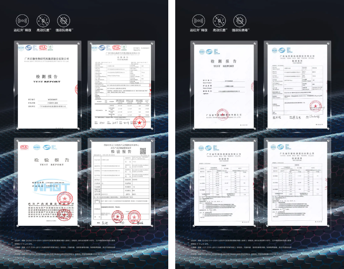 遠(yuǎn)紅外釋放:根據(jù)Q/QNZ 044-2024《遠(yuǎn)紅外功能浸漬膠膜紙飾面人造板》,經(jīng)檢測(cè), 法向全發(fā)射率≥83%,紅外輻射波長(zhǎng)范圍主要發(fā)射峰在4-14μm之間;