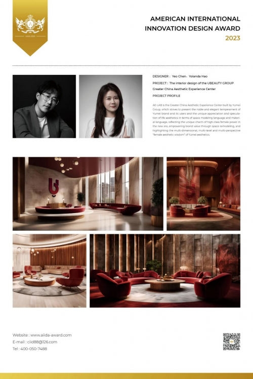經2023第六屆美國AIIDA國際設計大獎組委會評審,陳燮然 郝玉 老師的作品 由美集團大中華區美學體驗中心室內設計 成功榮獲2023美國AIIDA國際設計大獎 會所空間設計-金獎!