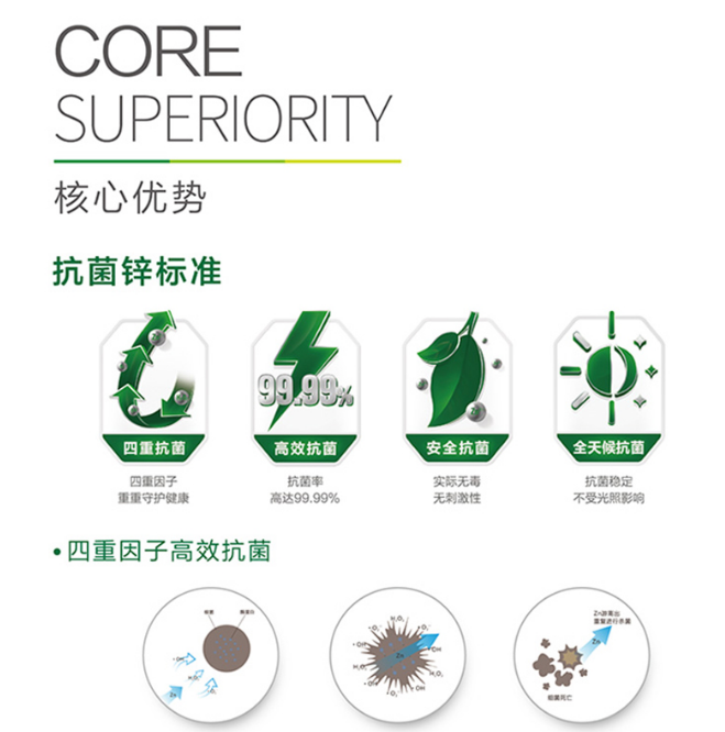 主要以細(xì)木工板為基板,再應(yīng)用新一代鋅效抗菌技術(shù),有效損傷細(xì)菌細(xì)胞膜,抑制細(xì)菌自生蛋白質(zhì)合成,有效抑制細(xì)菌滋生。該款生態(tài)板具有四重抗菌作用,抗菌率力達(dá)到99.99%,在環(huán)保的同時還能安全抗菌,且抗菌穩(wěn)定不受光照影響。