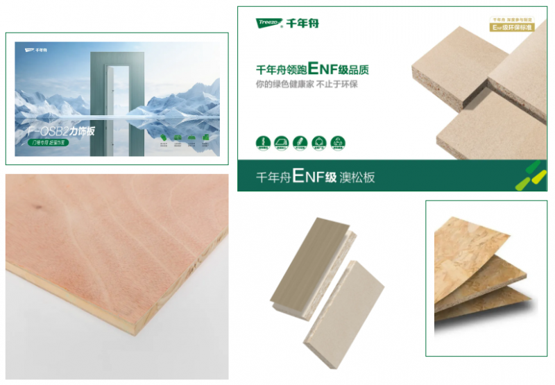 千年舟基板家族龐大,包含澳松板、松香力飾板F-OSB2、松香力飾板LSB、F-OSB、F-OSB1澳享板、SPB澳享板、家具多層板、密度板、顆粒板等多種類型、多種性能。