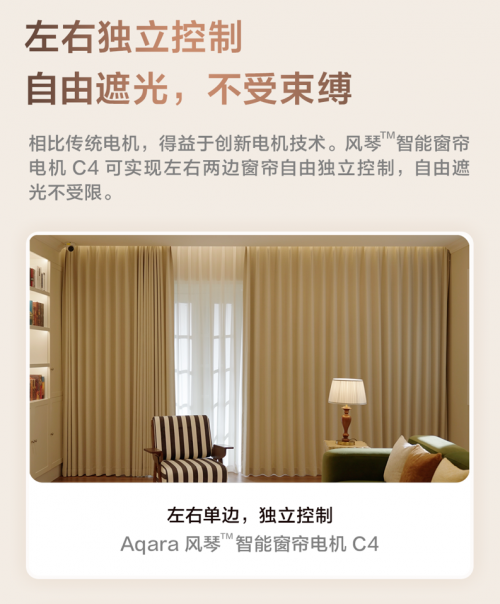 Aqara 風(fēng)琴 智能窗簾電機(jī) C4 的面世,不僅僅是綠米聯(lián)創(chuàng)在智能家居領(lǐng)域擁有領(lǐng)先實(shí)力的印證,更是體現(xiàn)了綠米聯(lián)創(chuàng)自始至終都在圍繞人的體驗(yàn)做努力的初衷。