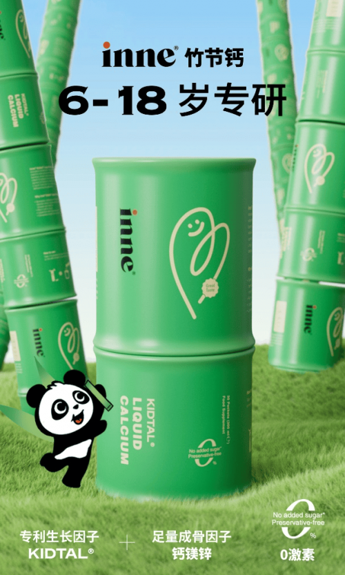 同時,inne積極踐行“營養分齡”理念,持續投入研發擴展旗下產品序列。今年5月,針對6-18歲兒童推出的inne竹節鈣,除了擁有足量成骨因子(鈣鎂鋅D3K2),為骨骼生長提供充足營養外,還特含專利成分Kidtal?氨基酸組合物,具有8倍高活性,能夠促進生長激素分泌。inne竹節鈣可以為骨骼生長提供雙動力,雙管齊下,有效幫助孩子拔高。inne竹節鈣可與inne鈣鎂鋅構成inne鈣產品系列矩陣,很好的匹配處于不同年齡段兒童的補鈣需求。