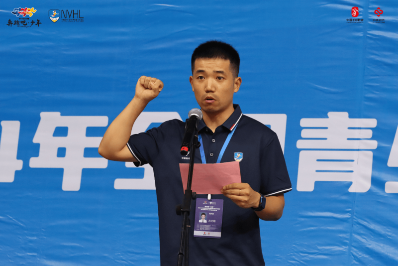 國家體育總局手曲棒壘運動管理中心青少年體育部部長魏郁彧首先對各方表示歡迎與感謝。講述了中國手球蓬勃發展態勢,并指出此次賽事旨在推廣普及手球,培養青少年素質,構建完善的人才體系,促進訓練質量提升,同時希望裁判員提高制裁水平,各方工作人員保持高度責任心,共同確保賽事公平公正、安全有序的平穩展開。“少年強則體育強,體育強則中國強”,在剛剛結束的巴黎奧運會上,中國體育代表團再創歷史佳績,取得了令人矚目的成就,他們頑強拼搏奮勇爭先的精神令全世界感動,更為新一代青年樹立了出色榜樣。魏部長提出全體運動員應向中國體育代表團學習,以更嶄新的精神面貌和更昂揚的斗志,投入到本次比賽之中,共同打造一個高水平高質量的賽事,做到辦賽精彩,參賽出彩,為中國青少年手球事業的發展做出更多貢獻,并祝賽事圓滿成功。