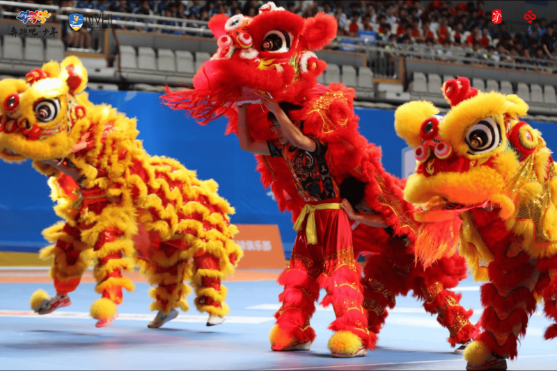 精彩的舞獅表演隨后驚艷亮相,四只威風凜凜的獅子在激昂的鼓點聲中奔騰跳躍。它們的動作矯健有力,時而高高躍起,時而搖頭擺尾,盡顯靈動與活潑。