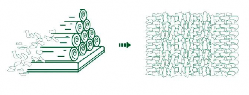 再升級材料嚴選優質原木,采用德國帕爾曼長材設備及意大利格魯巴斯環式刨片機,刨片細長更均勻;精細篩分去除細小顆粒,表面細膩;三層結構鋪裝,結構更密實;防潮膠粘劑匹配熱壓工藝,性能再提升。