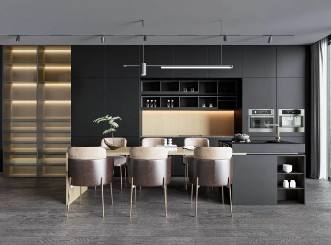 玄夜黑深沉而神秘的色調,為空間帶來了一種獨特的韻味。這種板材不僅質感細膩,觸感舒適,更能在視覺上營造出一種低調而奢華的氛圍。