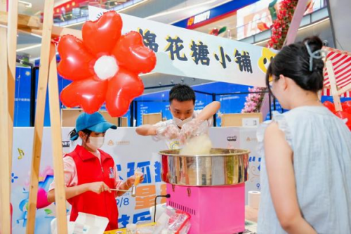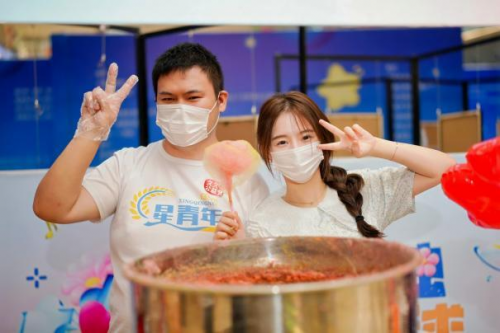 在公益樂園外圍還有一處“星星共創基地”,多位“星青年”在愛心人士的陪伴下,成為了咖啡屋、面包坊、手作坊的店主,他們向市民介紹產品,面帶微笑招攬客戶,還學習制作棉花糖,憨態可掬的模樣讓人忍不住想要立刻為他們的努力“買單”。