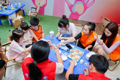 一個溫暖、有愛、包容的互動環境里,可以慢慢打開人們的心扉。在不孤獨星球公益樂園內,隨處都可以看到這樣暖心的畫面:小朋友們把秘密寫在藍色千紙鶴里,“悄悄”說給星孩聽;一個個印在一起的手印,是孩子們“牽手”的見證;大家拿起畫筆,填滿一顆顆彩色的星球,只為繪就出一個繽紛的世界;星孩們的藝術畫書簽和手工飾品,是最搶手的“商品”,大家用捐贈代替購買,讓星孩們通過學習到的技能更好地實現了自我價值。