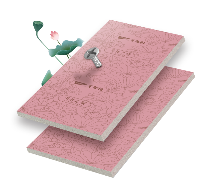 千年舟紙面石膏板國韻系列?天作之荷,板芯以脫硫石膏為主,添加高密度增強纖維絲,握釘力強,強度和韌性進一步提升,更利于尺寸穩定,不易變形。在吊頂與隔墻施工時不易崩邊,家裝品質更加可靠。