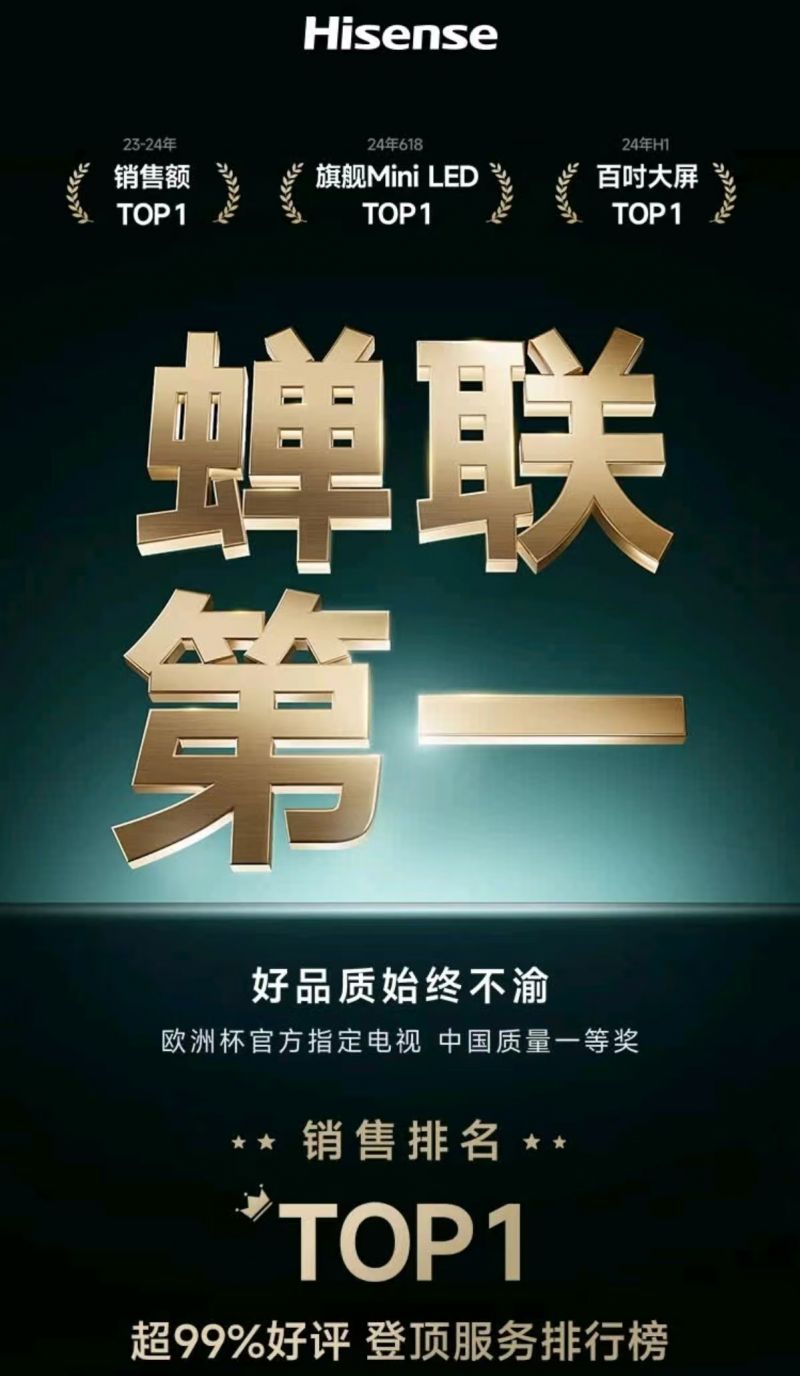 作為電視行業(yè)的領軍品牌,海信電視在ULED等畫質技術上不斷突破,帶來了更加細膩逼真的畫面體驗,同時也是唯一一家擁有自研畫質芯片的國產(chǎn)電視品牌;而且根據(jù)洛圖科技、奧維睿沃在內的多家權威機構報告顯示,海信電視銷量已經(jīng)連續(xù)多年位居國內市場第一、2023年-2024年電視銷售額國產(chǎn)第一、2024年618旗艦Mini LED電視銷量第一,以及2024年上半年百吋大屏電視銷量第一等等。