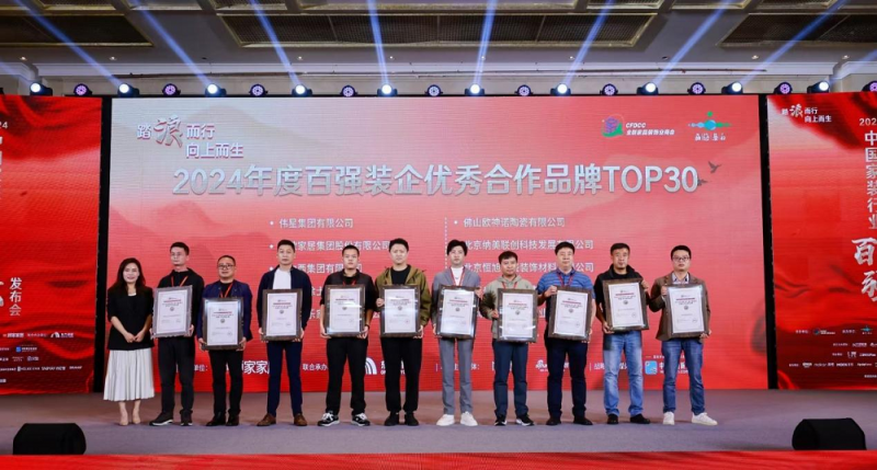 千年舟榮獲“2024年度百強裝企優秀合作品牌TOP30”稱號,這不僅是對千年舟的高度肯定,更是對我們長期以來堅持品質、創新和服務理念的最好回報。