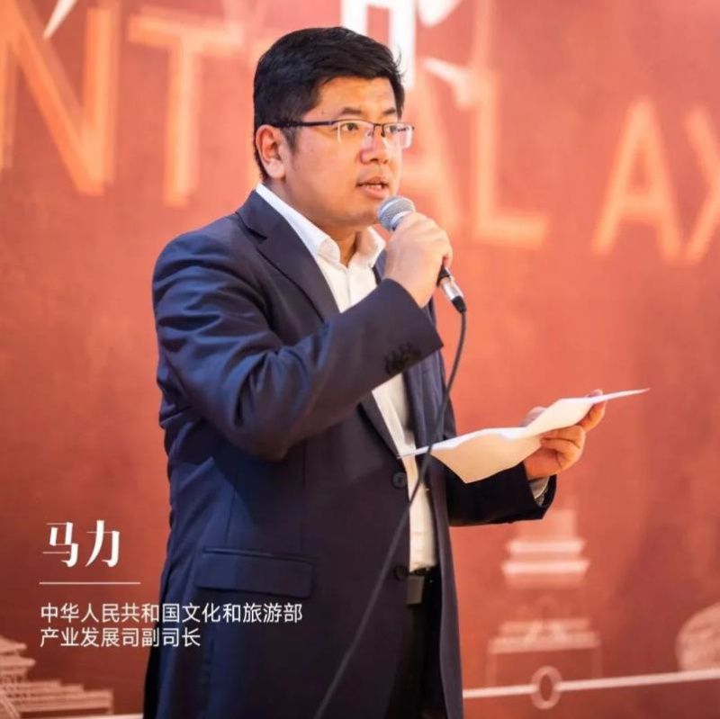 此次展覽得到了中華人民共和國文化和旅游部的大力支持,文旅部產業發展司副司長馬力、產業促進處處長劉戀蒞臨現場。馬力副司長在展覽開幕儀式上致辭,他表示:“?展覽不僅是對北京中軸線深厚豐富的歷史文化、?宏偉壯麗的建筑形態、?多彩多姿的非物質文化遺產的展示,?也是北京中軸線走出去的全新一步。?我們希望在時尚之都、藝術之都引發討論熱度,在時裝周之際,以古鑒今,表達中國人對與時尚、對于美的更深層次的理解。”