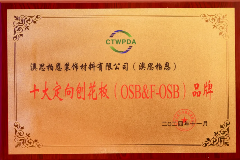 會上,澳思柏恩憑借出眾的產(chǎn)品品質(zhì)與卓越的市場影響力榮獲「2023-2024十大刨花板品牌」、「十大定向刨花板(OSB&F-OSB)品牌」,再度展現(xiàn)超凡實力。