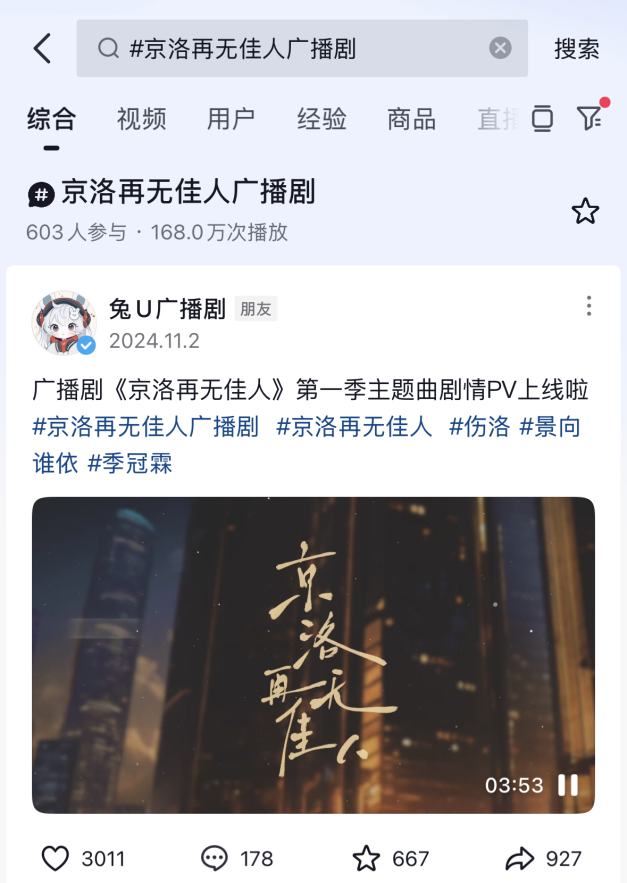 這次《京洛再無佳人》廣播劇的成功上線,不止是為大家帶來了一場視聽盛宴,也是收獲了各種聽眾朋友們的喜歡和夸贊,這也是為作為獨家播放平臺的兔U注入了新的活力,帶來了新的期待、增加了未來發展的動力。未來,兔U將繼續秉承“品質至上、用戶為先”的理念,不斷推出更多優質的內容,滿足廣大聽眾多樣化的需求。讓我們一起期待《京洛再無佳人》的后續劇情,以及兔U平臺上更多精彩內容的呈現!同時,我們更是期待與更多的合作伙伴攜手共進,共同推動音頻內容行業的繁榮發展。