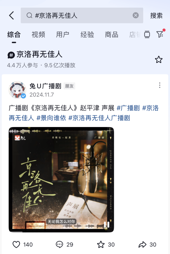 這次《京洛再無佳人》的成功上線,進一步的鞏固了兔U在音頻內容領域的領先地位,也將其推向了更高的臺階。誠摯呼吁可以有更多的聽眾朋友關注兔U平臺,共同見證更多精彩內容的誕生與發展。