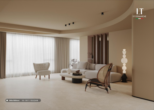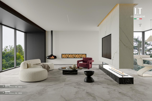 在工藝上,我們采用多種干粒、蜜蠟石刻釉、復刻釉、柔拋微模具等多重工藝,多種精細化工藝靈活搭配,讓每一款產品都有一處獨特的設計,表面有2-3種光感,能夠搭配更潮流的風格。這種多重質感的大理石瓷磚更受年輕人和設計師的青睞。