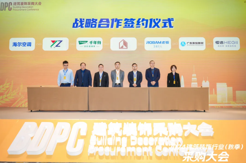 現(xiàn)場(chǎng)特設(shè)的千年舟品牌展區(qū)更是吸睛無(wú)數(shù),展現(xiàn)強(qiáng)大品牌實(shí)力,2025最新樣品、樣塊折頁(yè)等資料呈現(xiàn),備受與會(huì)來(lái)賓的青睞。會(huì)上,千年舟作為建筑裝飾行業(yè)的優(yōu)秀供應(yīng)商品牌與多家品牌和采購(gòu)委員會(huì)進(jìn)行戰(zhàn)略合作簽約,實(shí)現(xiàn)了品牌聲量與產(chǎn)品銷量的“雙贏”。