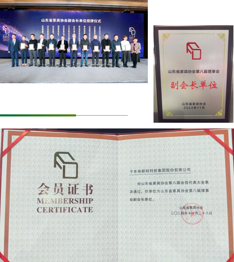 會(huì)上,憑借為行業(yè)發(fā)展做出的積極貢獻(xiàn),千年舟集團(tuán)獲頒山東省家具協(xié)會(huì)副會(huì)長(zhǎng)單位證書。