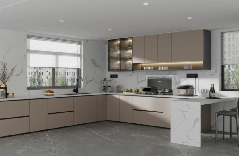 在高性能環保基材上,壓貼國產PETG膜皮,具有耐刮耐磨、耐污耐堿、抗黃變、色澤穩定、防水防滑、經濟環保、易清潔等優勢。即使在高頻率使用的廚房或活潑好動的兒童房,也能輕松應對,守護您和家人的安全第一線!是一款極具性價比柜門板材。