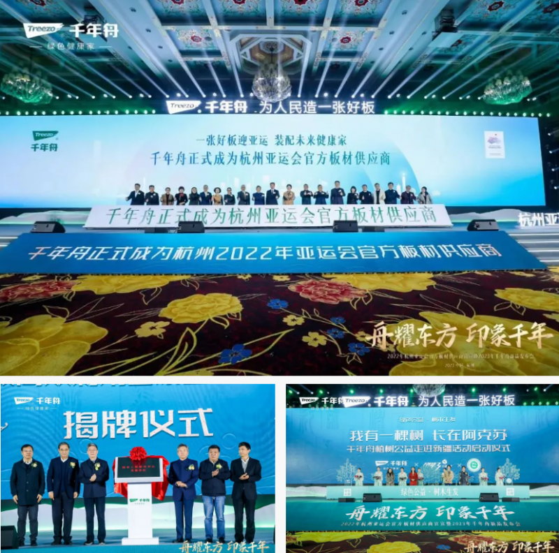 擇日龍抬頭,2023年千年舟新品發布會在杭州·蕭山盛大啟幕,這場千人盛會,共同見證了千年舟杭州第19屆亞運會官方板材供應商的官宣、23年新品發布、鋅效抗菌2.0全新升級、【林木生物低碳高效利用國家工程研究中心】揭牌、公益活動授牌的繽紛成就。