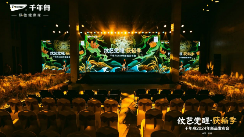 2023年末,千年舟在杭州·良渚文化藝術中心召開了以“紋藝覺醒·獲稻季”為主題的2024年新品發布會。此次活動由數場舞臺劇交融古今,娓娓訴呈科技、風尚、健康、文化、藝術、綠色融合共生的華美篇章。由此,千年舟從良渚起源,沿著時空邂逅優秀的傳統文化,從古老的東方紋理和非遺技藝中汲取靈感,打造了獨具特色的自主IP—“紋藝覺醒”,并開啟了由紋脈再現古韻新章的征程。