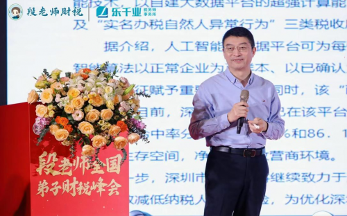 緊接著由原國稅局大咖韓青博士分享《金稅四期背景下企業(yè)稅務(wù)風(fēng)險與應(yīng)對》,韓博士主要講述了以下兩點:1. 從金稅一期到金稅四期的稅制改革歷程,以及金稅四期的來臨對企業(yè)的影響;2. 隨著數(shù)電發(fā)票的全面推進和人工智能時代的到來,數(shù)據(jù)場景和技術(shù)平臺的不斷升級,使得稅收管理體制越來越嚴(yán)格,這就要求企業(yè)不得不重視財務(wù)合規(guī)、稅務(wù)合規(guī),只有合規(guī)才是對企業(yè)最好的納稅籌劃!韓博士專業(yè)又系統(tǒng)的講解讓段付勤老師的弟子們學(xué)到了許多平時接觸不到的稅務(wù)知識,也為眾多企業(yè)未來稅務(wù)合規(guī)化作了正確的指引。