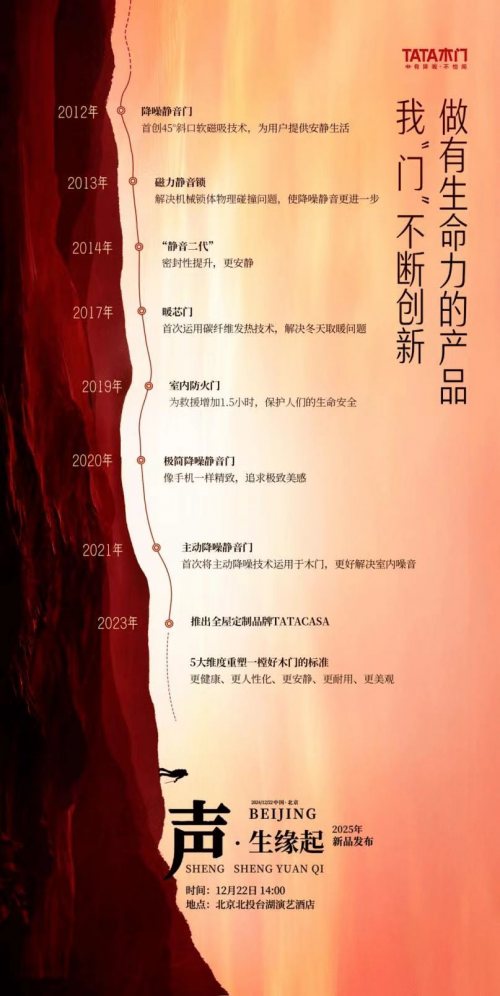 每年12月22日的新品發(fā)布會(huì)上,TATA木門都會(huì)向業(yè)內(nèi)外、消費(fèi)者呈現(xiàn)他們對(duì)聲音、對(duì)降噪研究的最新成果。