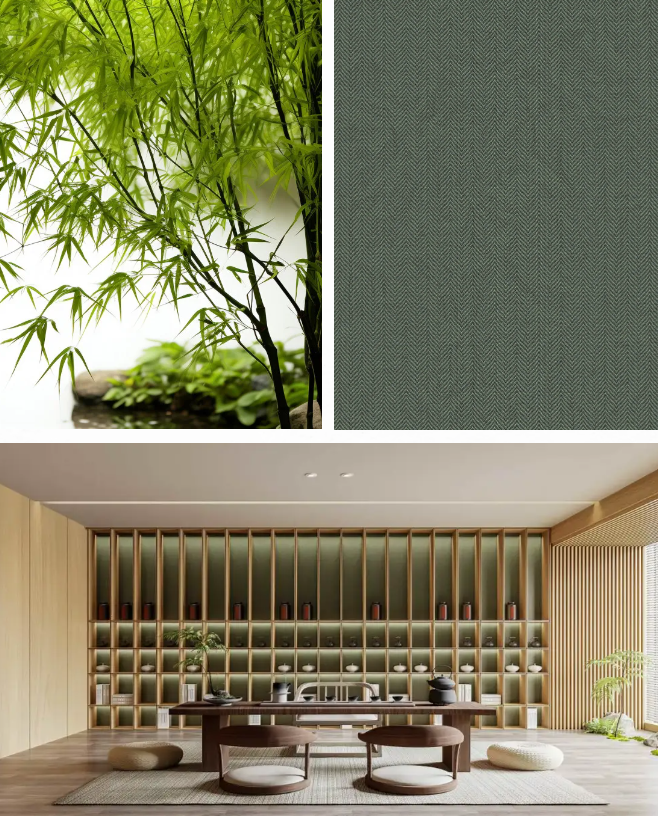 △主要運用了園中的假山和綠竹進行的延伸,細節處再結合蘇繡的紋理最終呈現的效果,象征著生長與新生,代表自然、寧靜和舒適。